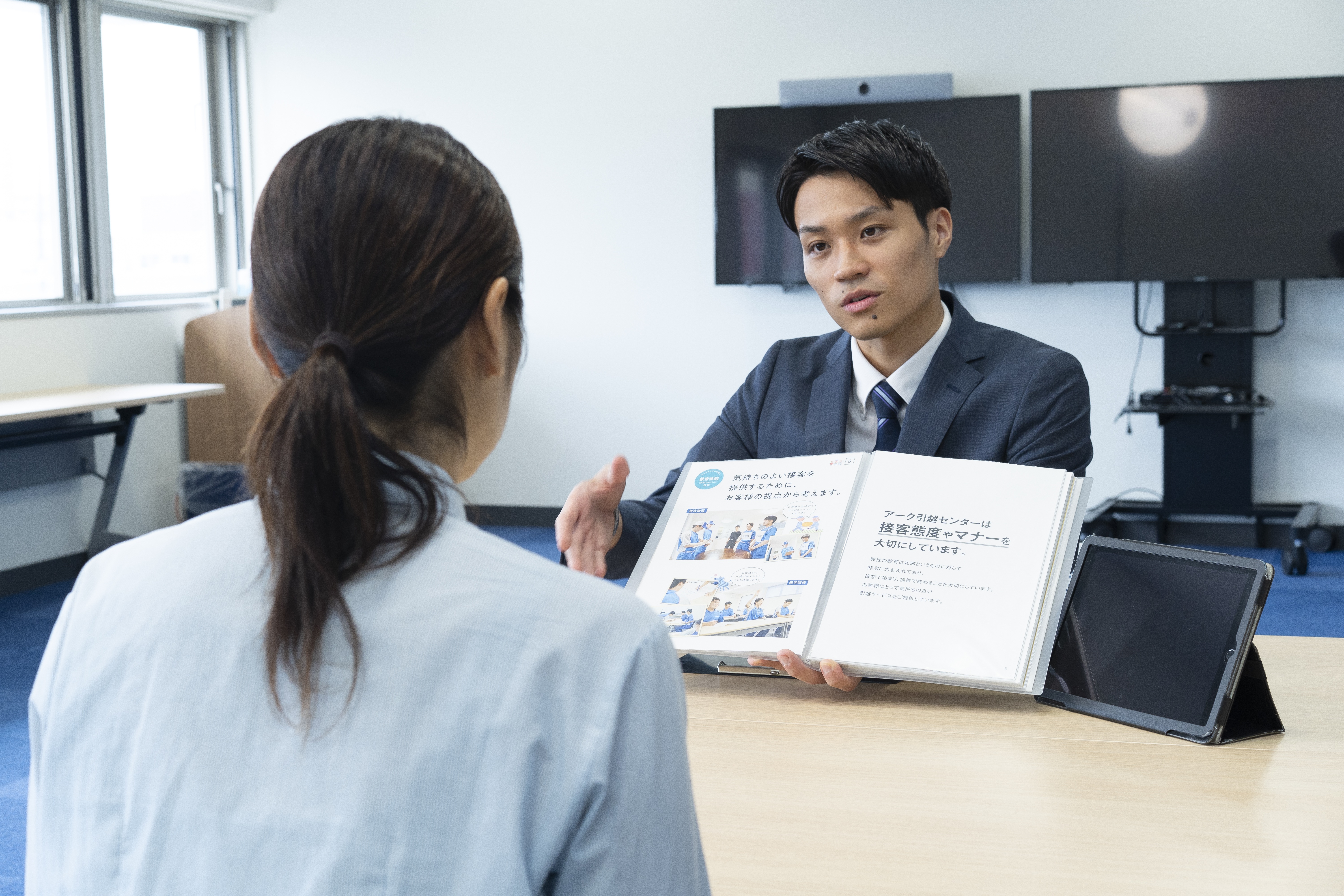 引越しの理由などを丁寧にヒアリングし、後の提案に活かします。お客さまの話にまず共感し、褒めることが信頼関係を深めるコツです。